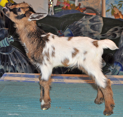 T43, chocolate buckskin doeling with white, frosted