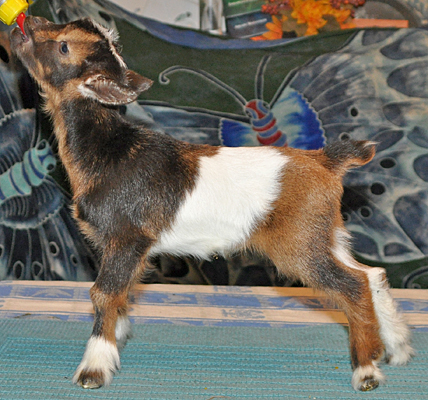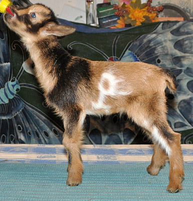 T38, chocolate buckskin doeling with white, frosted