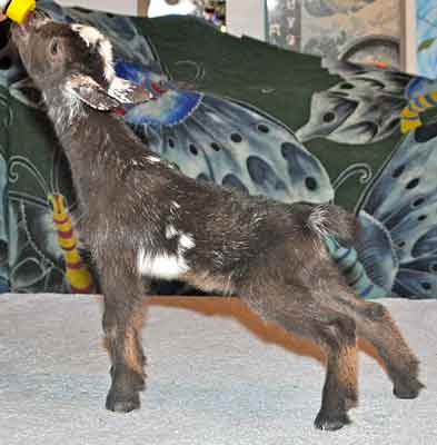 | P64 , chocolate and tan buckskin doeling, no white; Dragonfly MZ TBD is retained |
