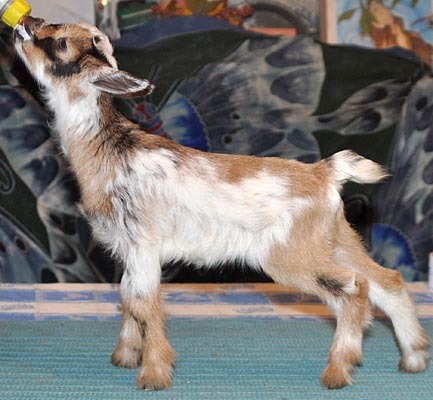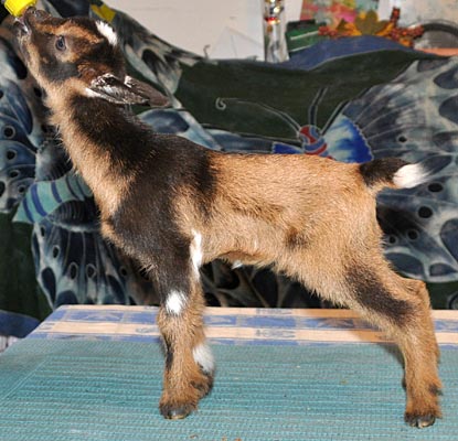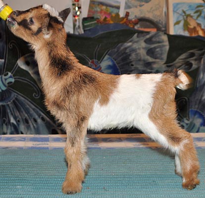 T43, chocolate buckskin doeling with white, frosted