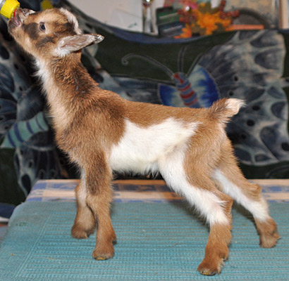 T38, chocolate buckskin doeling with white, frosted