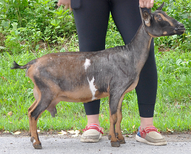 Kiora is a tiny little doe, probably a throwback to her paternal great grand dam, Harlequin, who was a towering 17 inches tall--but it is still a bit surprising given that her dam Liliana is bumping the stick ¯\_(?)_/¯. She ks very sweet, though, with very nice udder attachments, and solid general appearance. Another to keep a daughter or two from, if she would grace me with one.